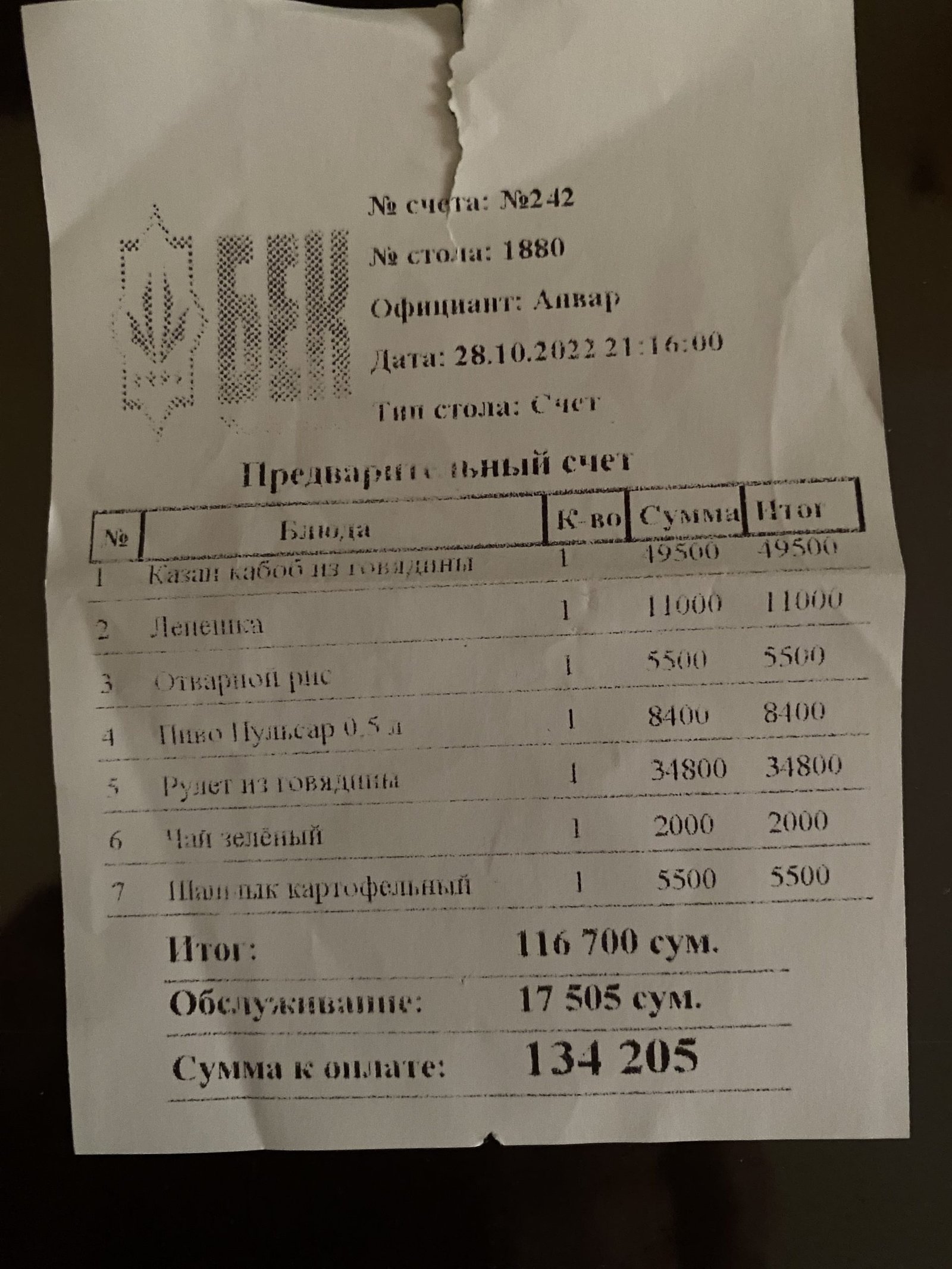 E poi ci presentano il conto della cena