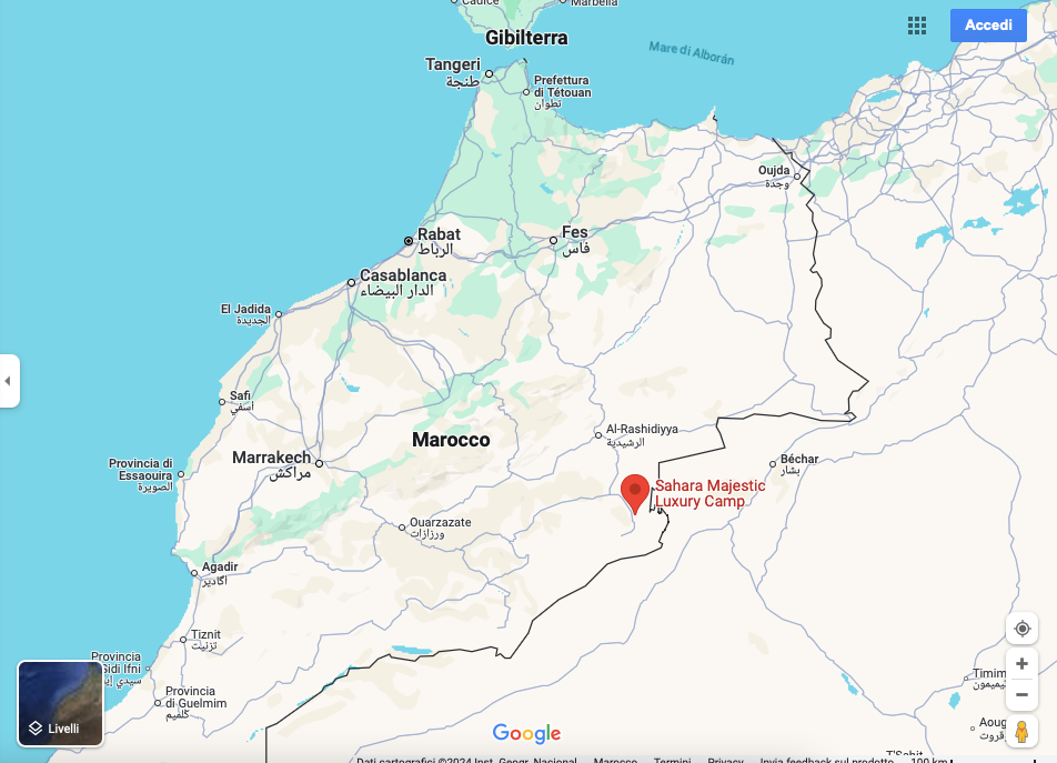Verso il tardo pomeriggio siamo arrivati al campo tendato a Merzouga, al confine con l’Algeria. O meglio…. Abbiamo dovuto lasciare la macchina nel villaggio, per poi fare il trasferimento di circa 15 minuti fino al campo tramite, un fuoristrada.